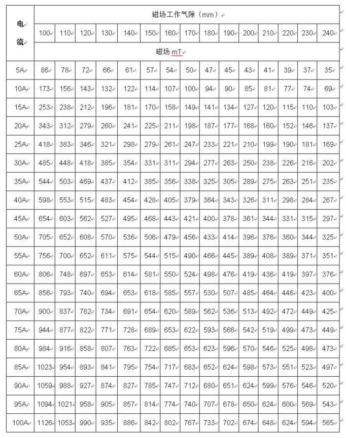 4.0、磁场参数表